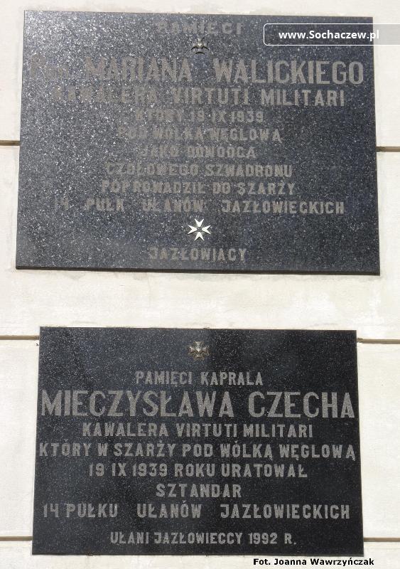- Tablica pamięci por. Mariana Walickiego kawalera Virtuti Militari który 19 września 1939 roku pod Wólką Węglową jako dowódca czołgowego szwadronu poprowadził do szarży 14 Pułk Ułanów Jazłowieckich.