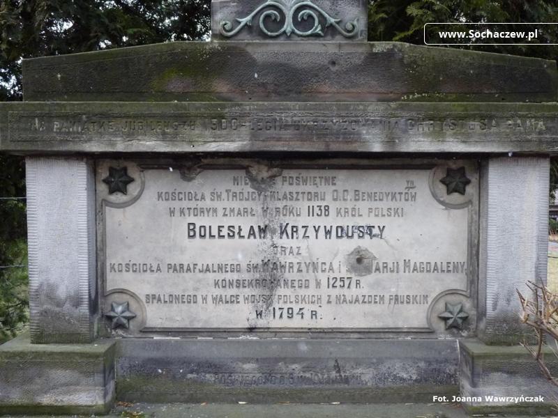 Pomnik został postawiony przy ulicy Staszica w okresie dwudziestolecia międzywojennego przez władze miasta Sochaczewa dla uczczenia 800 rocznicy śmierci księcia Bolesława Krzywoustego. Jest to niewielki obelisk zwieńczony krzyżem, w górnej części wykuto napis „ NA PAMIĄTKĘ JUBILEUSZU 1900-LECIA UKRZYŻOWANIA CHRYSTUSA PANA.”