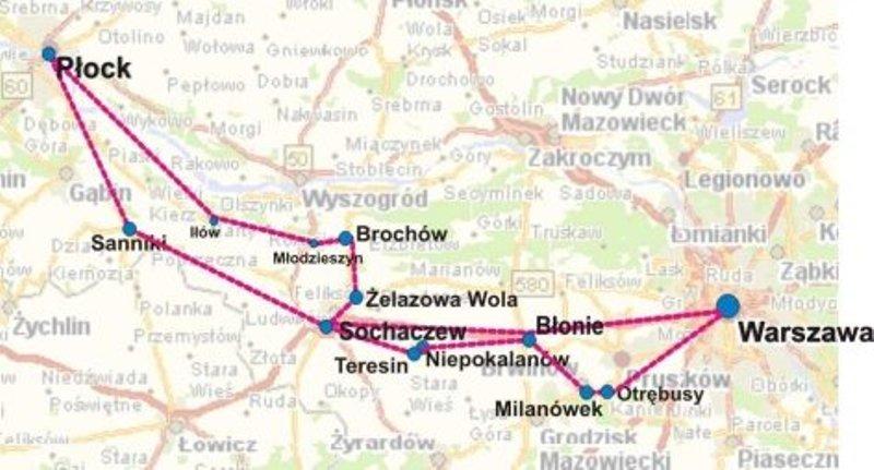 - Powrót do Warszawy – przez Płońsk - Nowy Dwór Mazowiecki, lub przez Płońsk – Wyszogród - Czerwińsk.