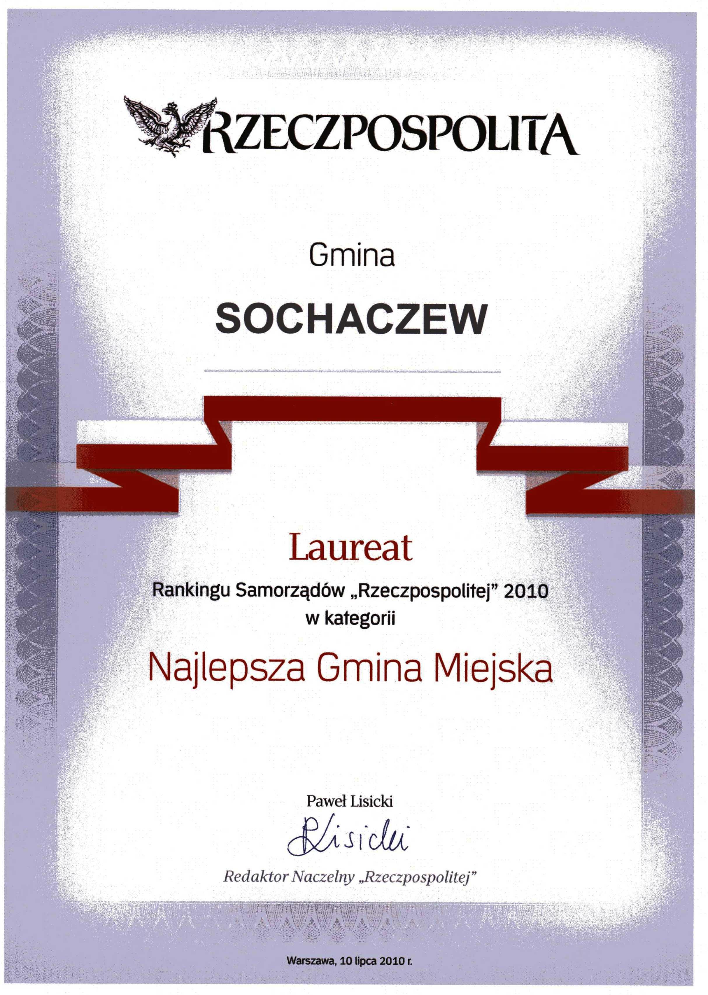 Instytuty badawcze, ogólnopolskie gazety oraz organizacje zrzeszające samorządy lokalne prowadzą od lat kilka prestiżowych konkursów (rankingów) pozwalających porównać dokonania Sochaczewa na tle innych, podobnej wielkości miast. W ostatnich latach Sochaczew doceniony został m.in. w konkursach "Złota Setka Samorządów", „Europejska Gmina - Europejskie Miasto” oraz ogólnopolskim rankingu prowadzonym przez Związek Powiatów Polskich.