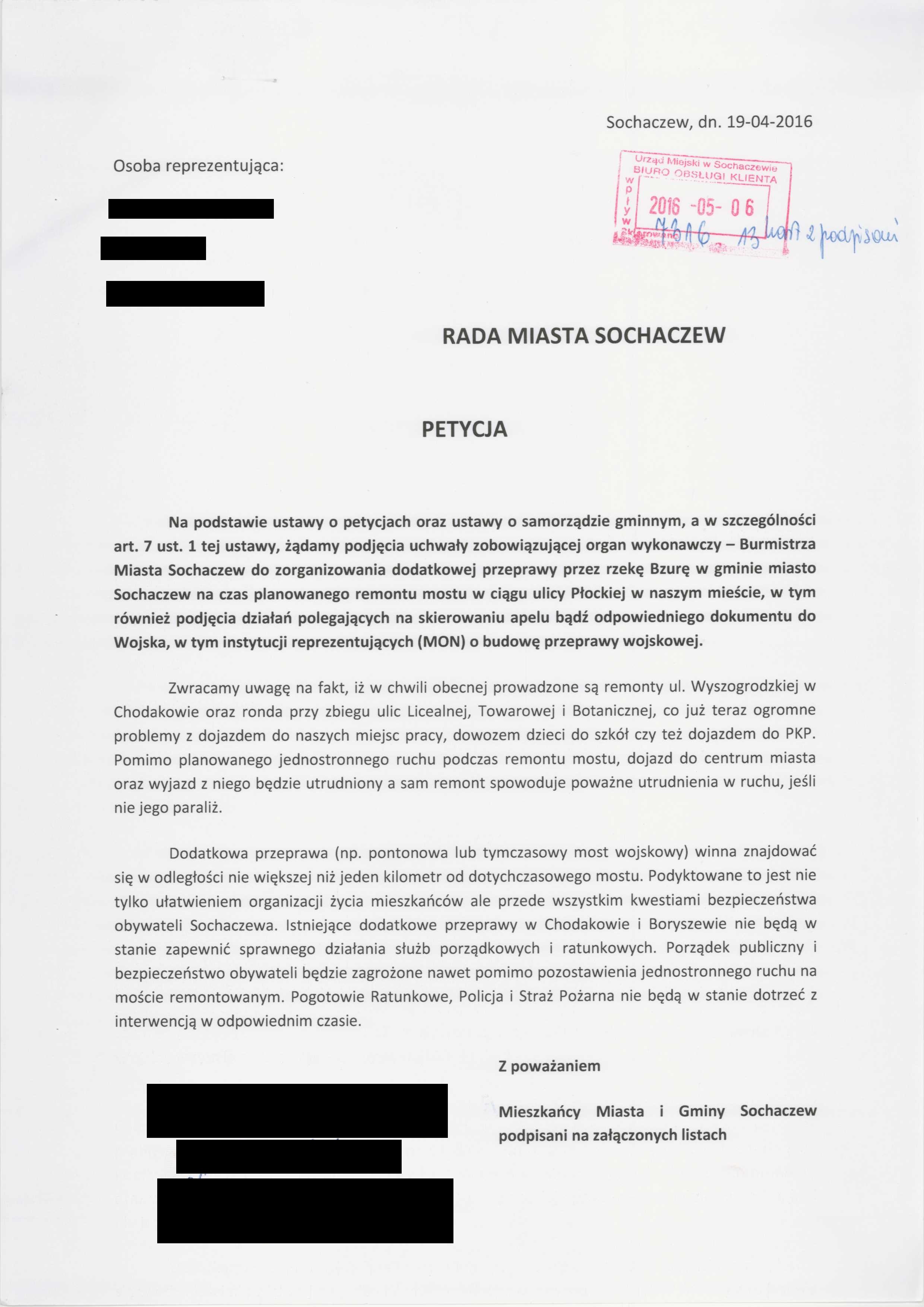 Petycja z dnia 06.05.2016r. (Rada Miejska)